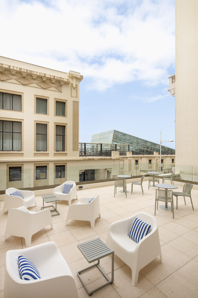 Situado en la Grande Plage, en pleno centro de Biarritz y hermano pequeño del Hôtel Windsor, La Suite es un magnífico hotel 4 estrellas con 19 habitaciones, diseñado para acogerle a usted y a su familia. El hotel ha sido completamente reconstruido tras una fachada histórica en la avenida Edouard VII, reconocible por su emblemática torreta. La sencillez de la decoración deja mucho espacio a materiales nobles cuidadosamente elegidos: piedra, cristal, madera, metal y terrazo.